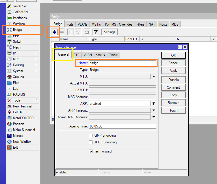 1.) สร้าง Bridge ขึ้นมา ไปที่ Menu Bridge > กด Add + เพิ่มขึ้นมา > สามารถแก้ไขชื่อ Bridge ได้เพื่อให้สอดคล้องกับการเรียกใช้งาน